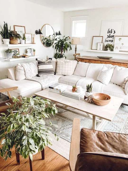 Boho chic evlerin olmazsa olmazı bitkilerdir. Büyük yapraklı salon bitkileri, sarkıt bitkiler veya küçük kaktüsler… Hepsi bu stilin ruhuna hizmet eder. Özellikle hasır veya seramik saksılar tercih edilerek doğal görünüm güçlendirilebilir.